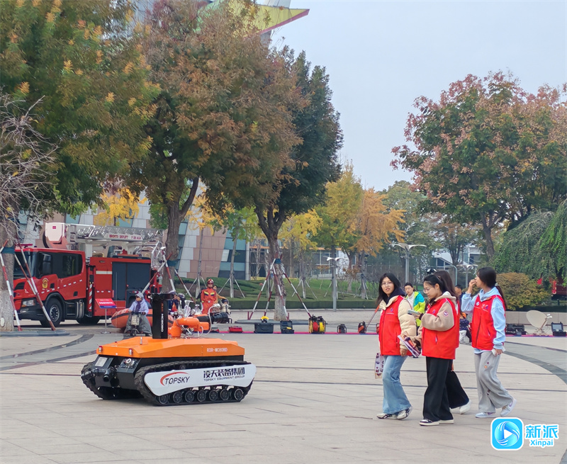 消防車輛展示體驗區(qū),各式消防車整齊排列,消防員現(xiàn)場講解車輛功能。“防爆消防滅火偵察機器人是一種集成了多項先進技術的消防裝備,專為應對復雜、危險的火災環(huán)境而設計?!毖b備器材展示區(qū)既有油鋸、滅火器等常規(guī)裝備,也有防爆消防滅火偵察機器人等高精尖設備,消防員逐一講解裝備用途和操作方法。