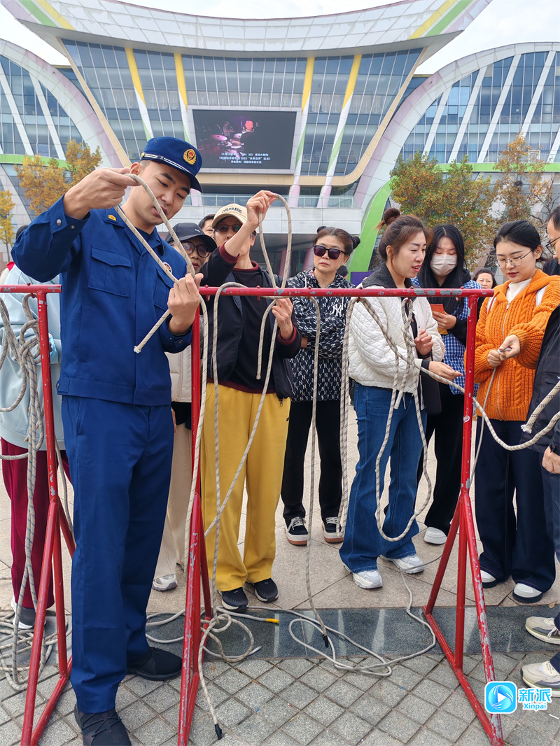 市民現(xiàn)場學習打繩結(jié)技巧。